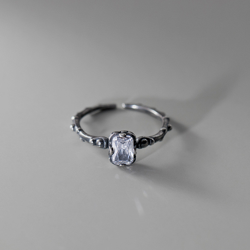 s925 sterling silver simple trendy leaf rhinestone adjustable ring
