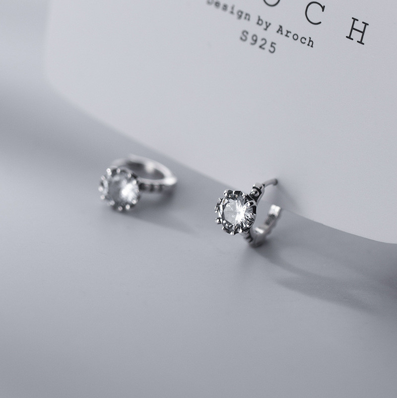 s925 sterling silver cute simple rhinestone asymmetri earrings