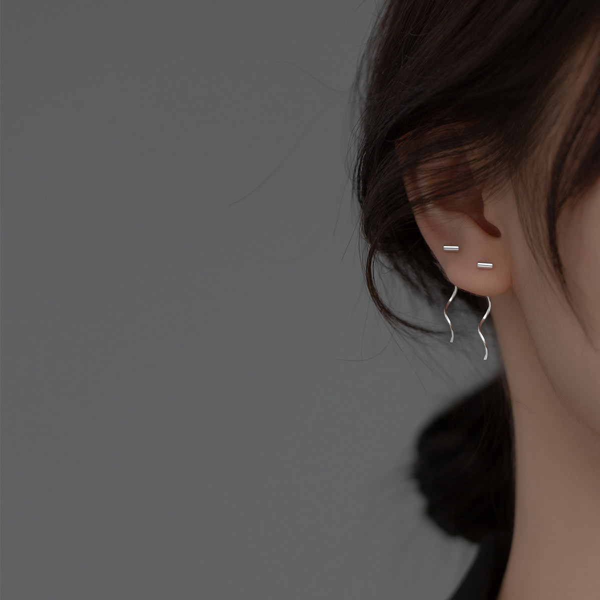 s925 sterling silver stars black rhinestone doublelayer earrings