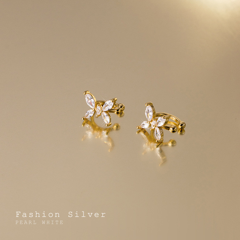 s925 sterling silver doublelayer hollowed chain clipon simple chain earrings