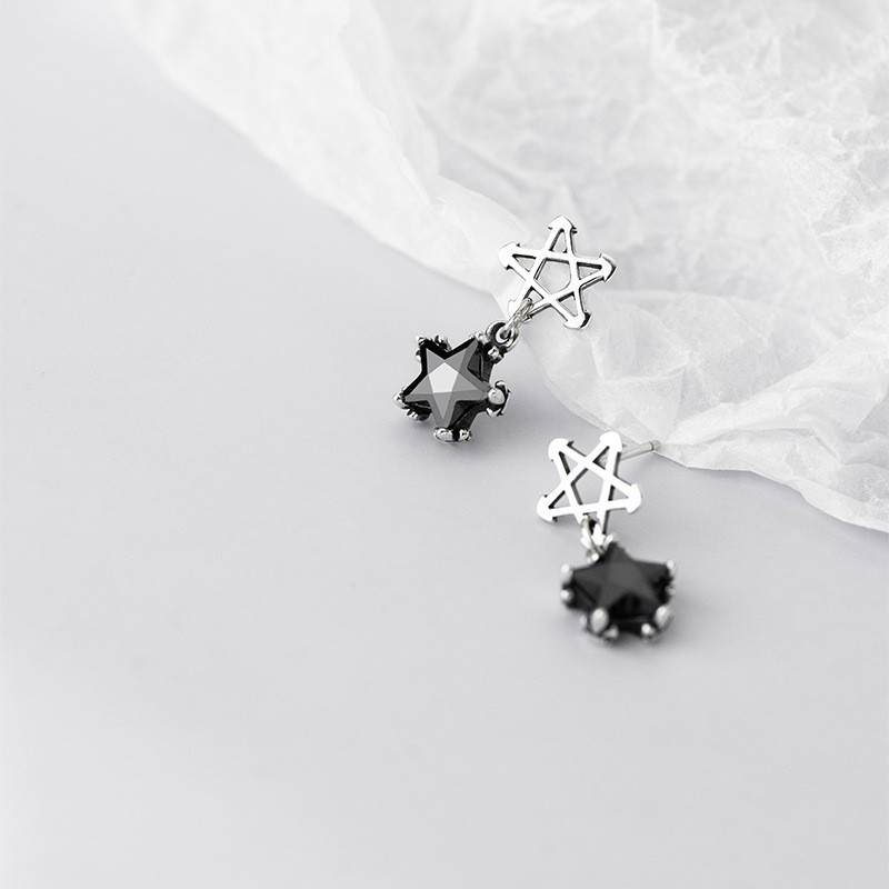 s925 sterling silver stars black rhinestone doublelayer earrings