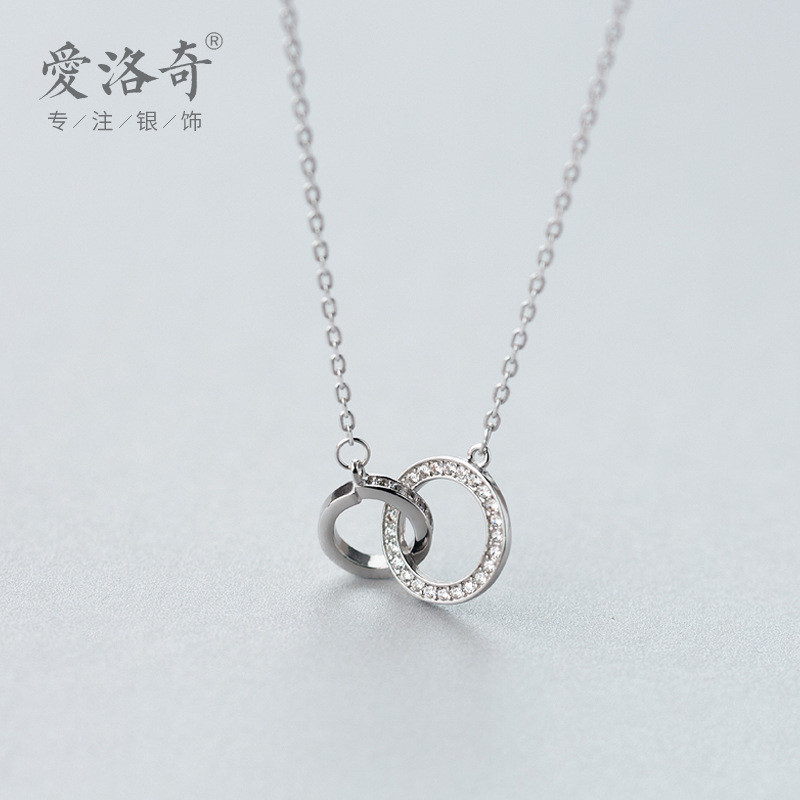 s925 sterling silver doublelayer fashion chic silver asymmetric necklace