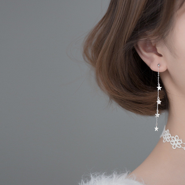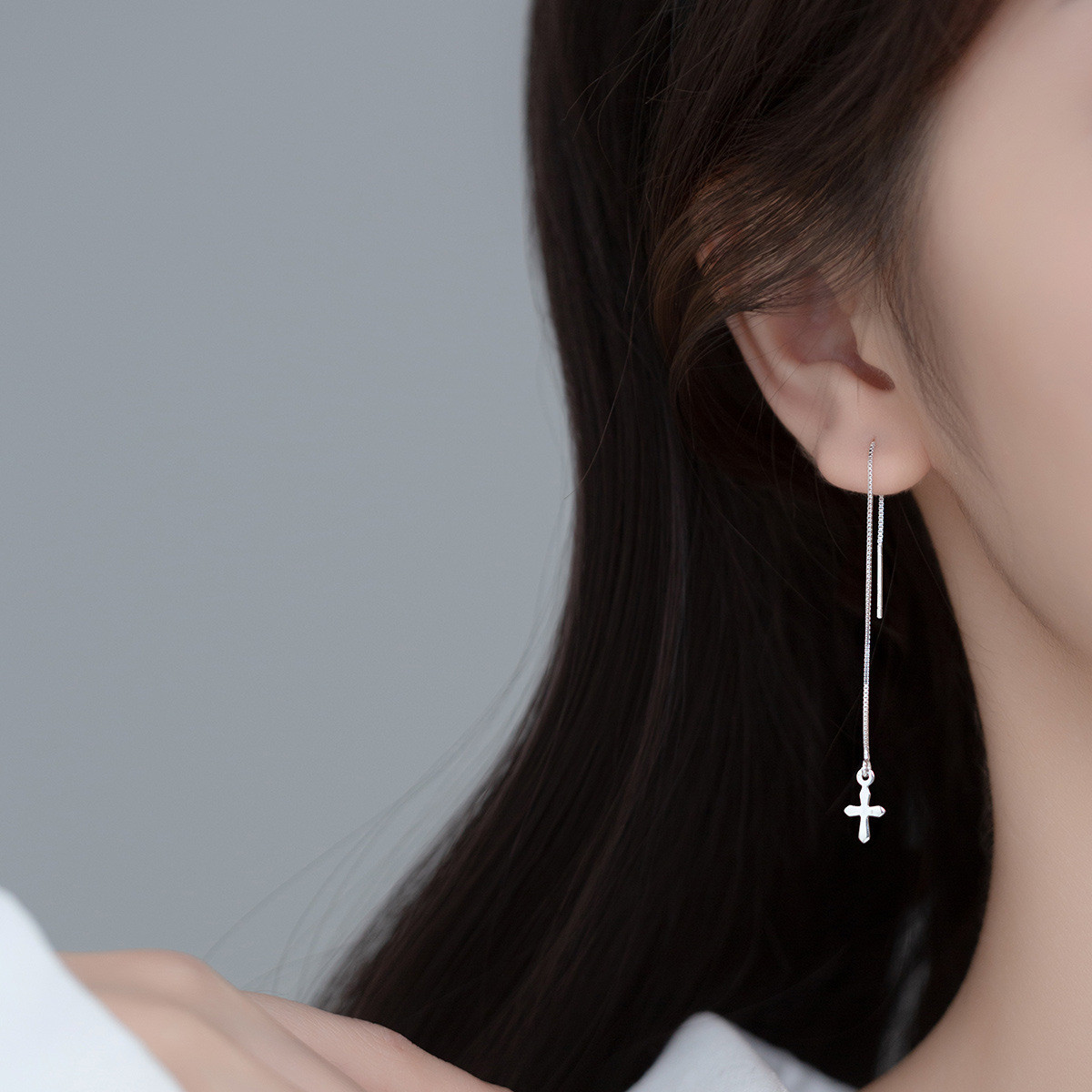 s925 sterling silver string simple small trendyV initial fashion chic sweet unique earrings