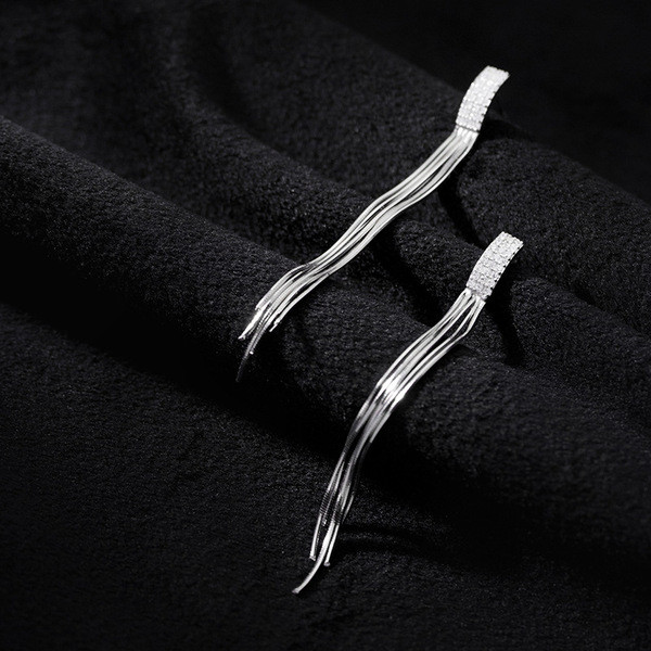 s925 sterling silver fashion trendy rhinestone feather chic elegant earrings