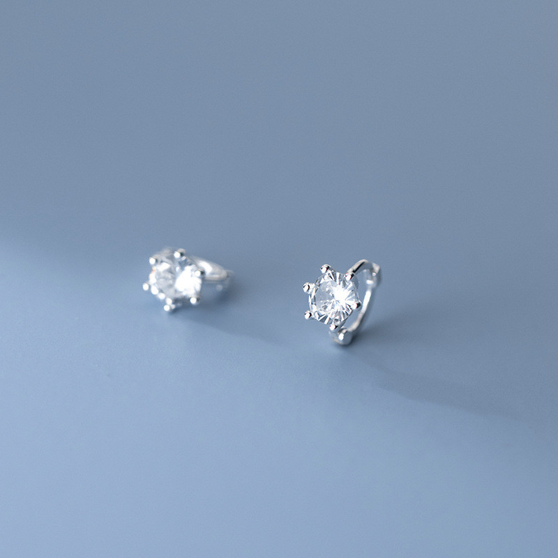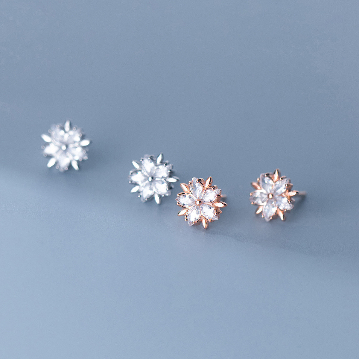 s925 sterling silver rhinestone short hoop chic simple flower earrings