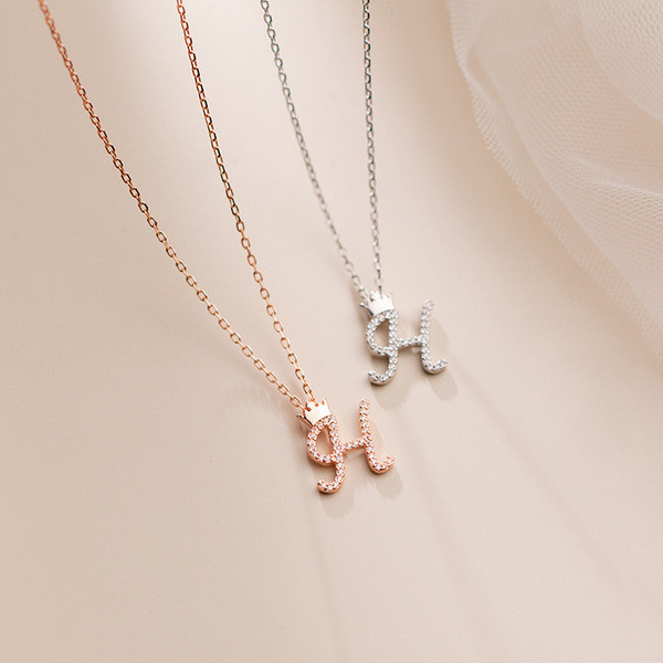 s925 sterling silver square letter rhinestone necklace