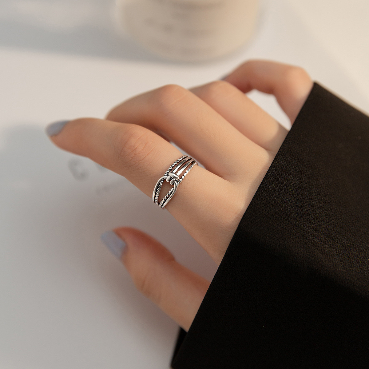 s925 sterling silver unique trendy doublelayer adjustable chic ring