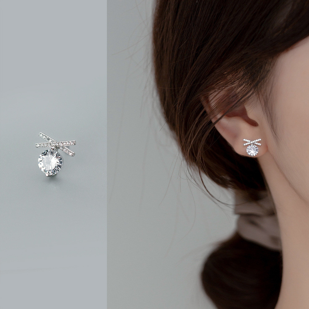 s925 sterling silver simple fashion rhinestone cross chic uniqu earrings