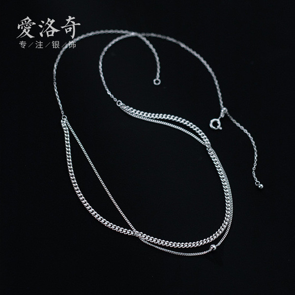 s925 sterling silver chic heart bar geometric rope necklace