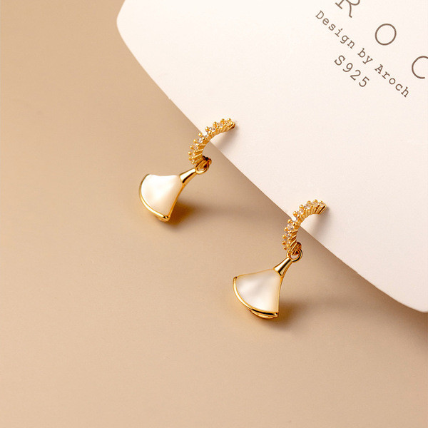 s925 sterling silver simple asymmetric shell chic sweet cute earrings