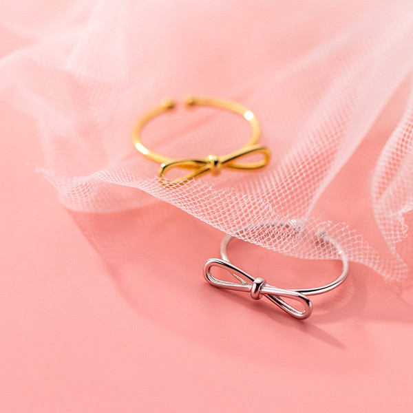 s925 sterling silver chic gold bow adjustable ring