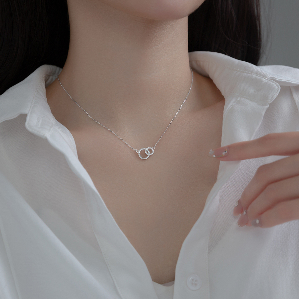 s925 sterling silver pendant fashion circle square rhinestone geometric necklace