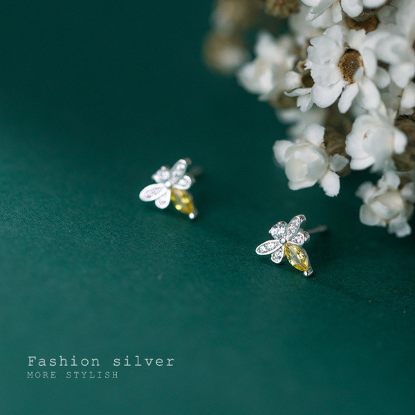 s925 sterling silver doublelayer rhinestone cute simple fashion earrings
