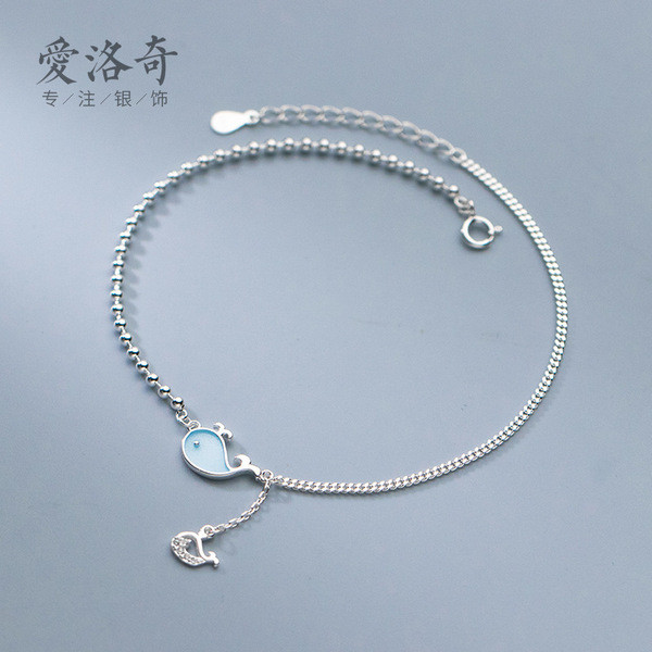 s925 sterling silver rhinestone crescent anklet women sweet fashion bracelet