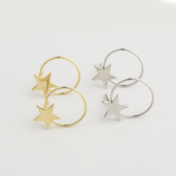s925 sterling silver sweet trendy geometric circle starlight earrings