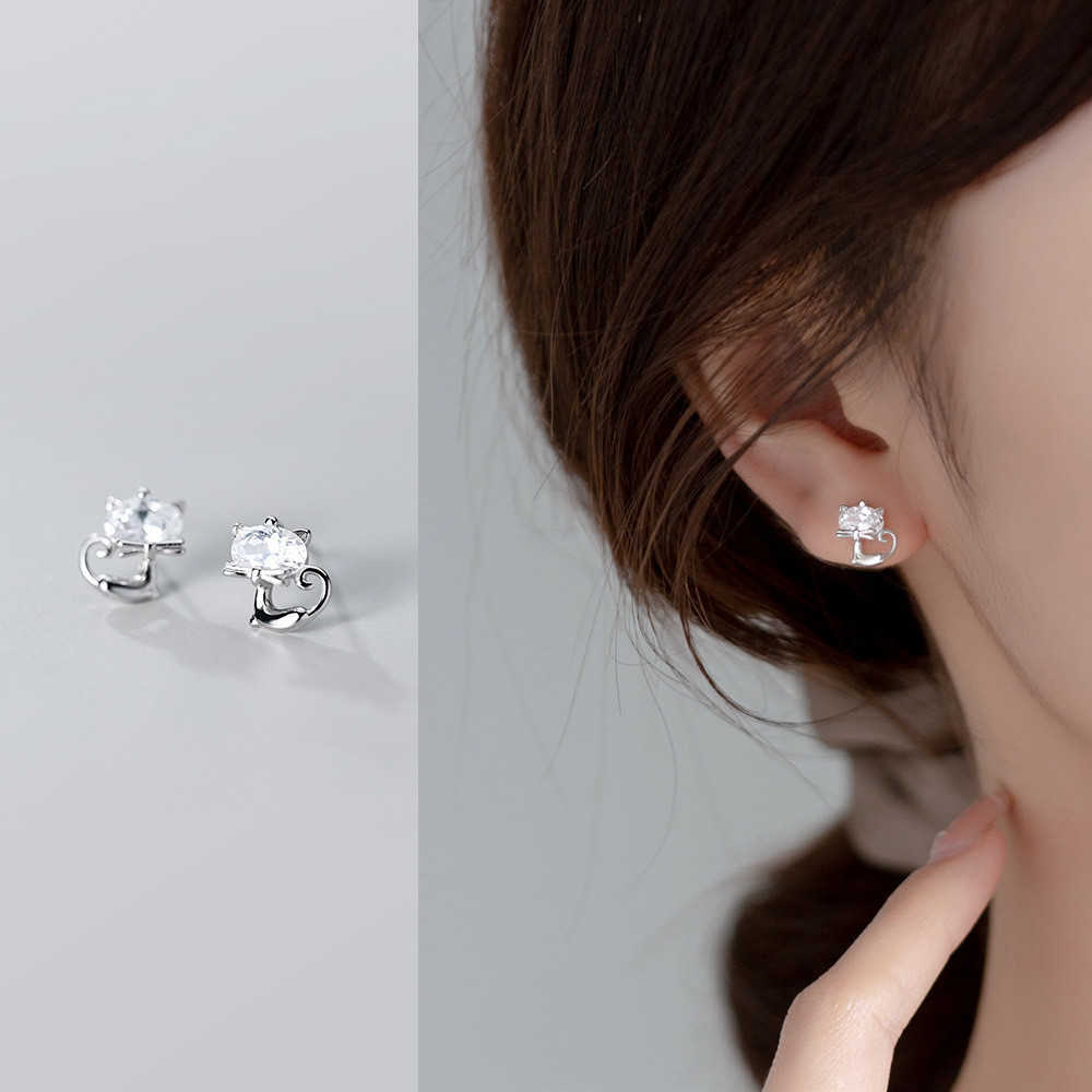 s925 sterling silver clipon rhinestone sweet piercing earrings