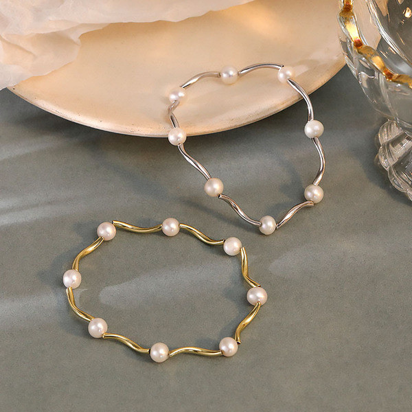 s925 sterling silver simple chain crystal pearl charm bracelet