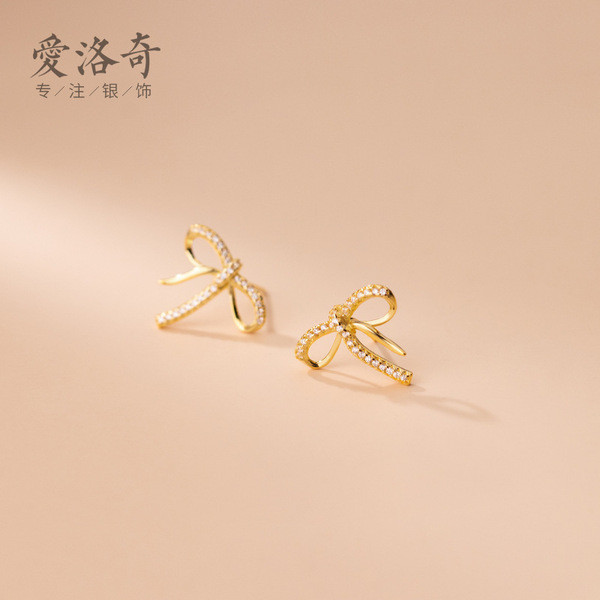 s925 sterling silver simple trendy rhinestone hollowed heart bow chic earrings