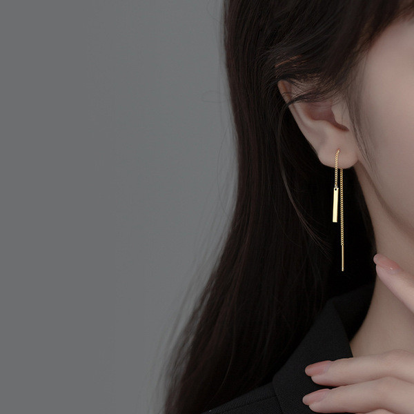 s925 sterling silver simple doublelayer bar rope earrings