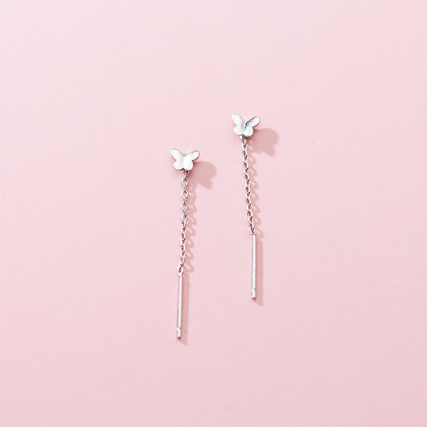 s925 sterling silver simple long rhinestone tassel chain earrings