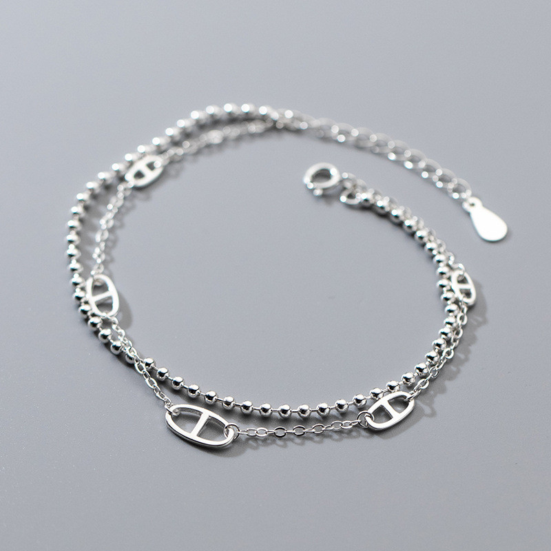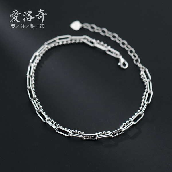 s925 sterling silver chic doublelayer silver heart sweet heartshape bracelet