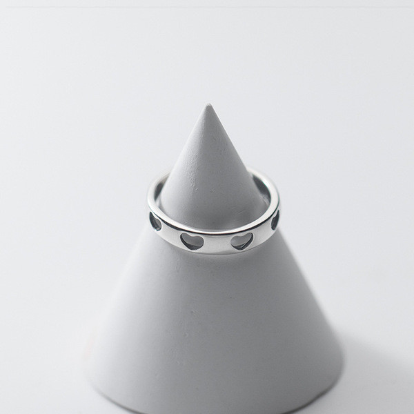 s925 sterling silver heart pink rhinestone sweet cute trendy ring