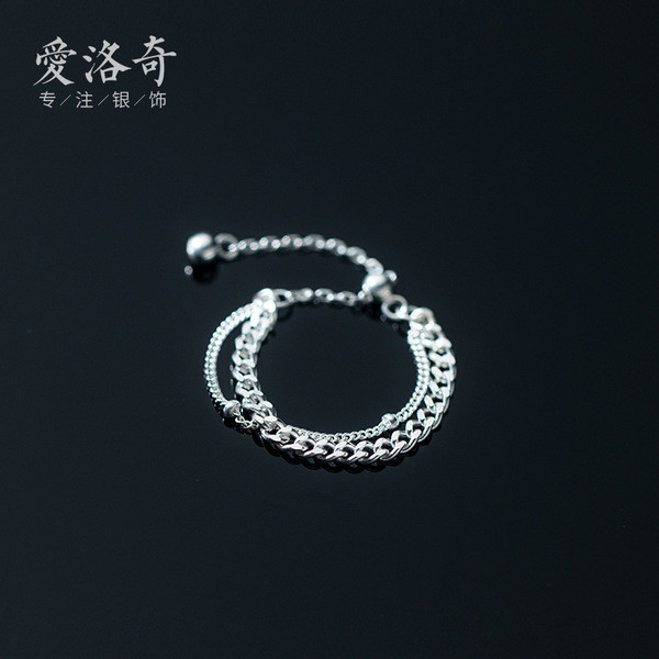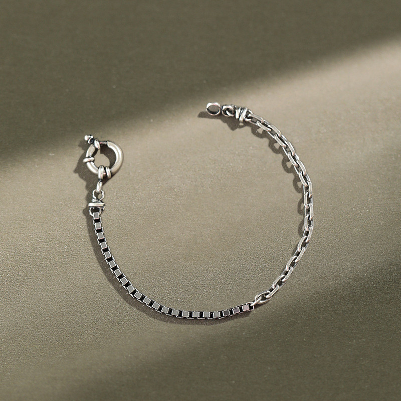 s925 sterling silver silver vintage unique boxchain asymmetric geometric bracelet