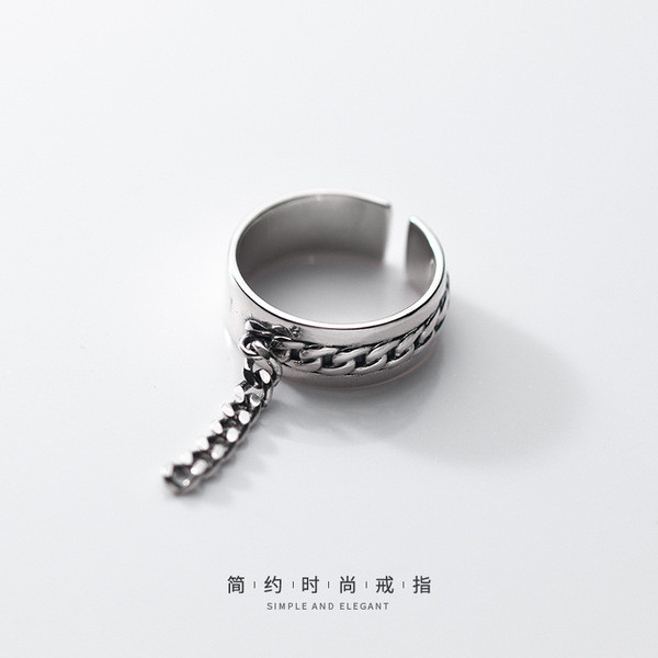 s925 sterling silver chic chain adjustable geometric ring