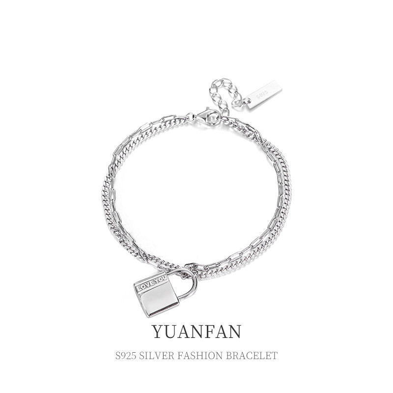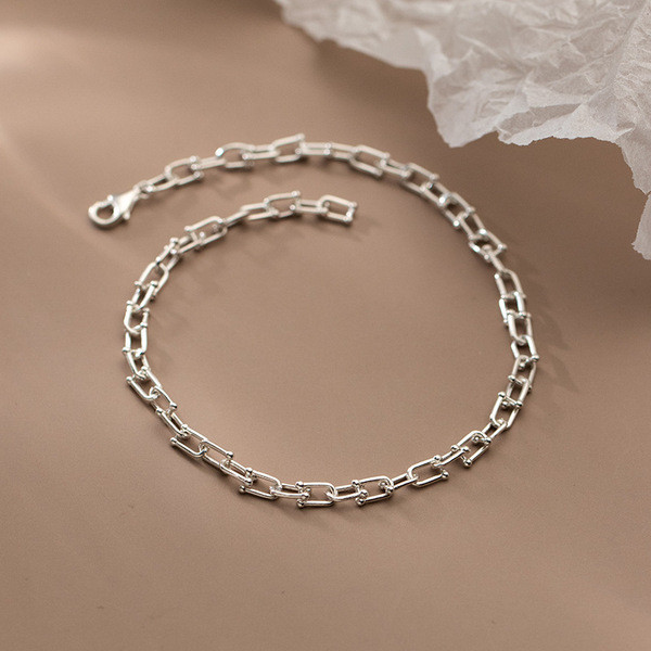 s925 sterling silver simple boxchain vintage chic geometric charm bracele bracelet