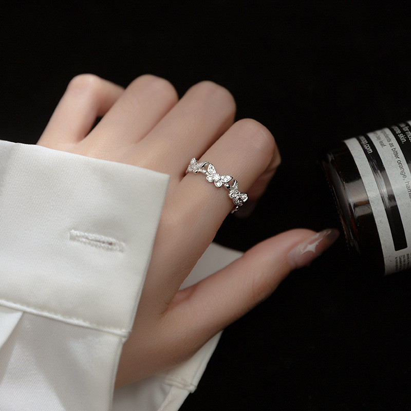 s925 sterling silver hollowed rhinestone butterfly ring