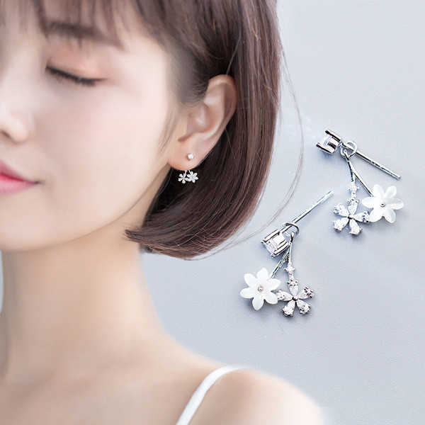s925 sterling silver trendy unique rhinestone silver earrings
