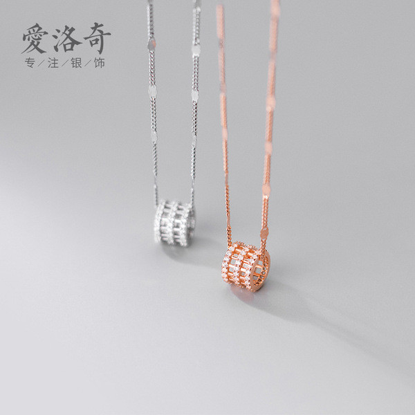 s925 sterling silver chic hollowed rhinestone circle necklace