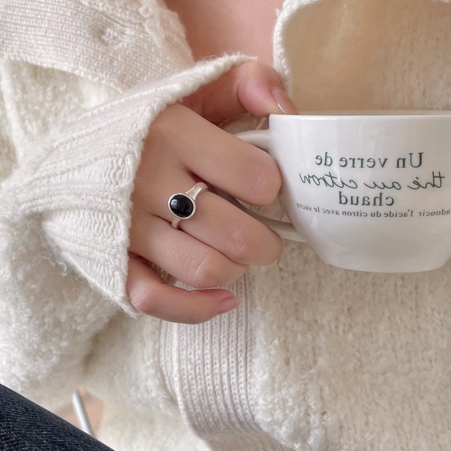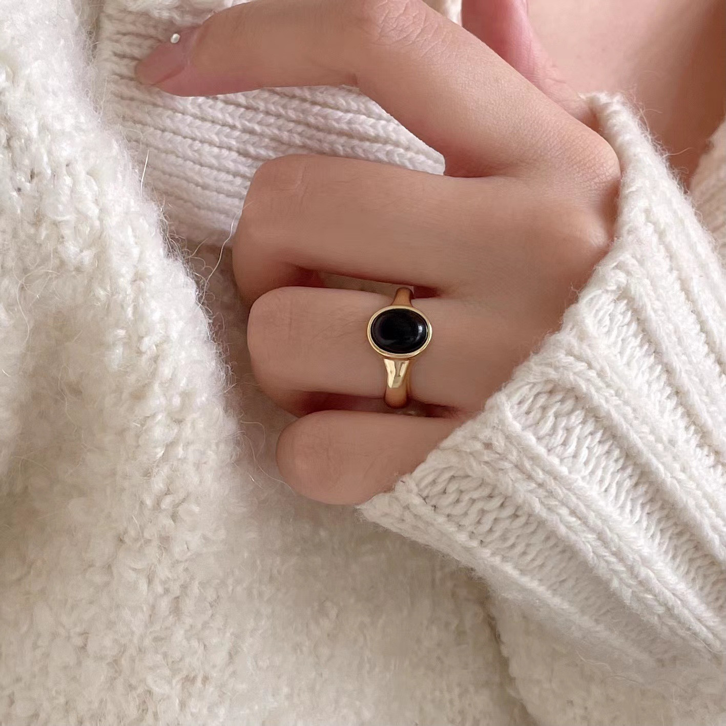 Be the first to review “simple s925 sterling silver black agate ring ring”