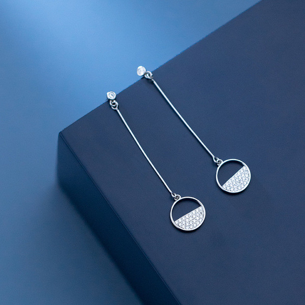 s925 sterling silver simple rhinestone unique fashion circle earrings