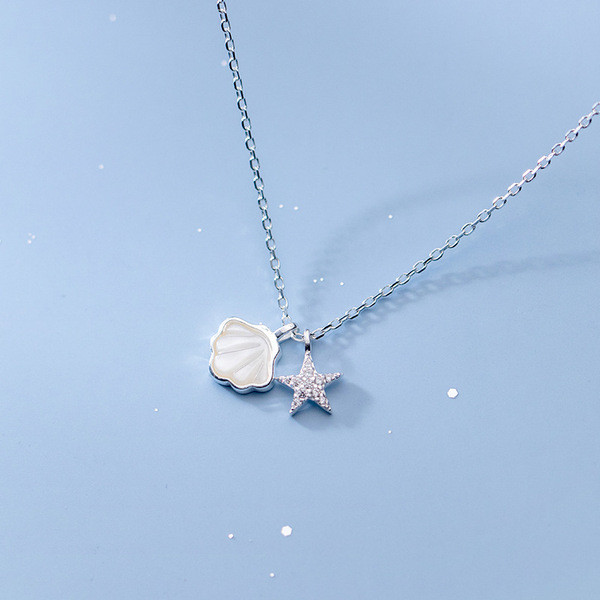 s925 sterling silver square shell necklace