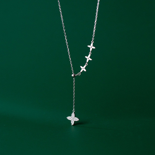 s925 sterling silver rhinestone silver necklace
