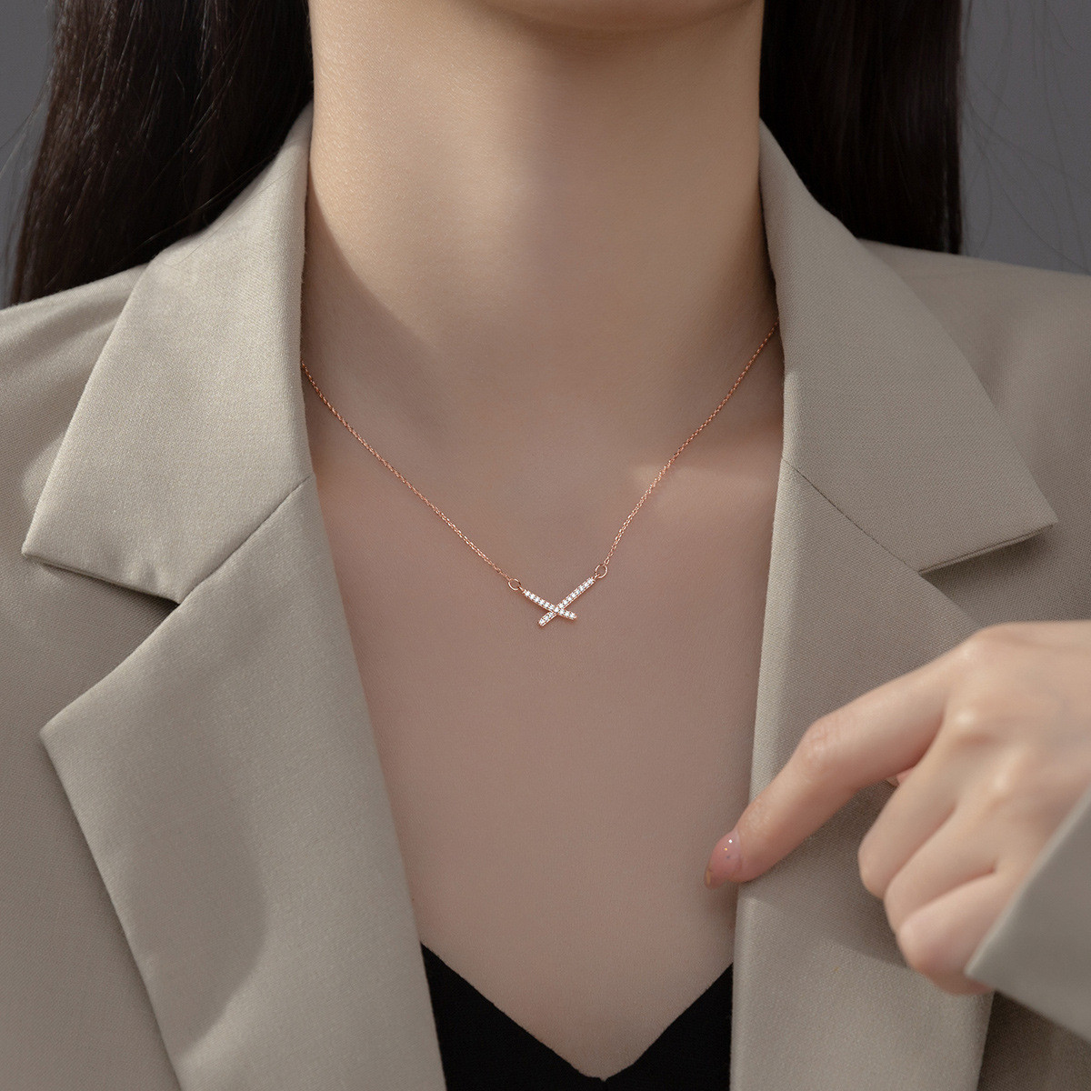 s925 sterling silver trendy rhinestone necklace