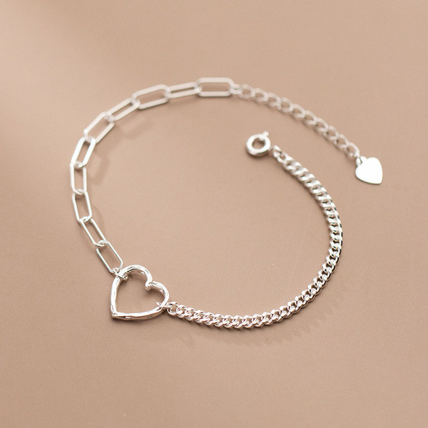 s925 sterling silver trendy simple heart sweet chicr heartshape bracelet