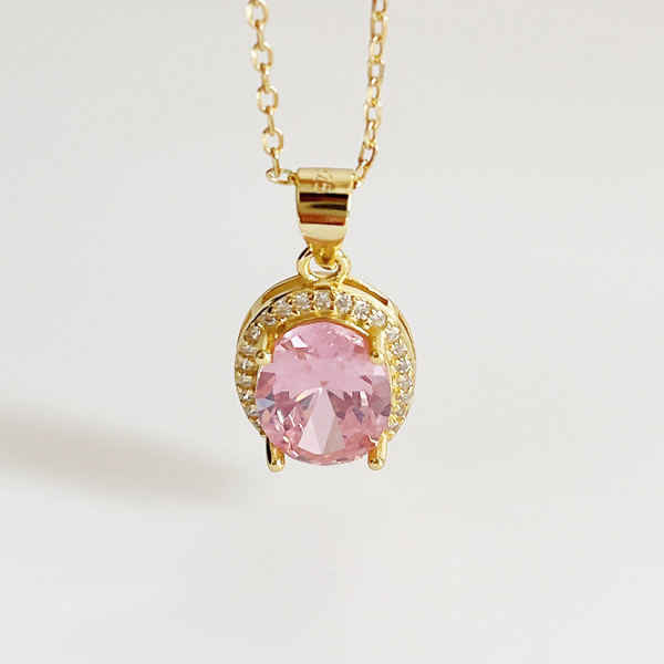 dainty simple 925 sterling silver gold fashion unique pink cubiczirconia necklace