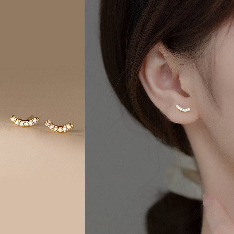s925 sterling silver simple fashion chic unique rhinestone cute earrings