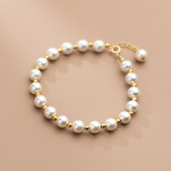 s925 sterling silver pearl rhinestone shell gold charm bracelet