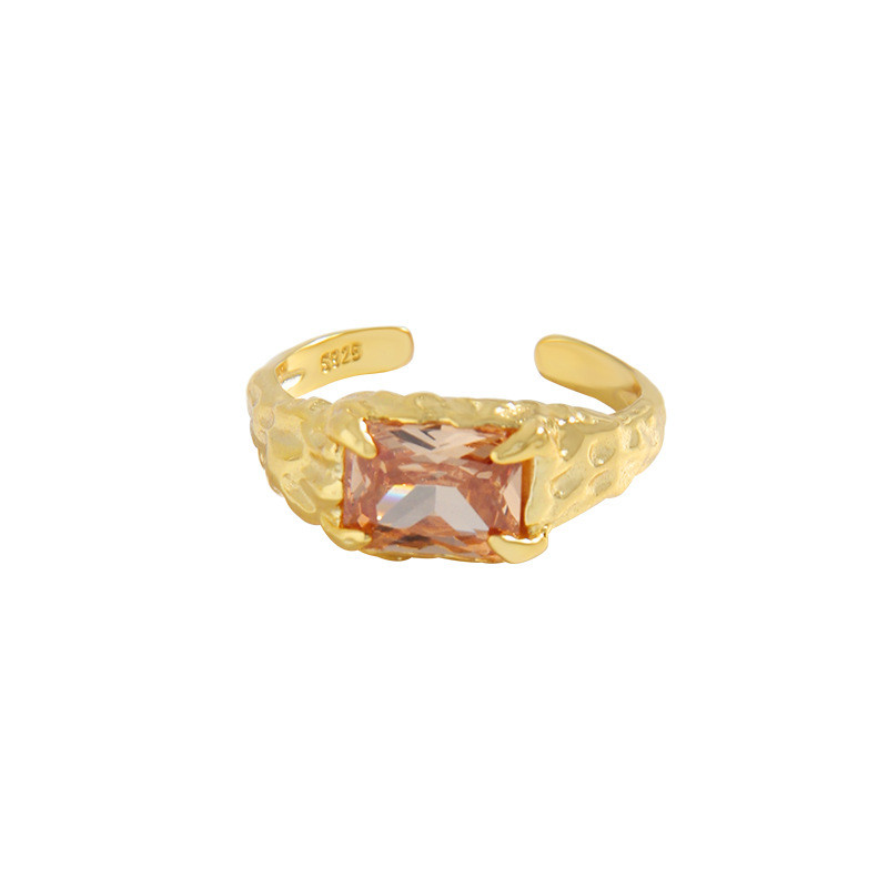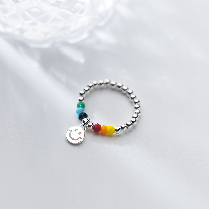 geometric colorful cubiczirconia silver adjustable ring Single one