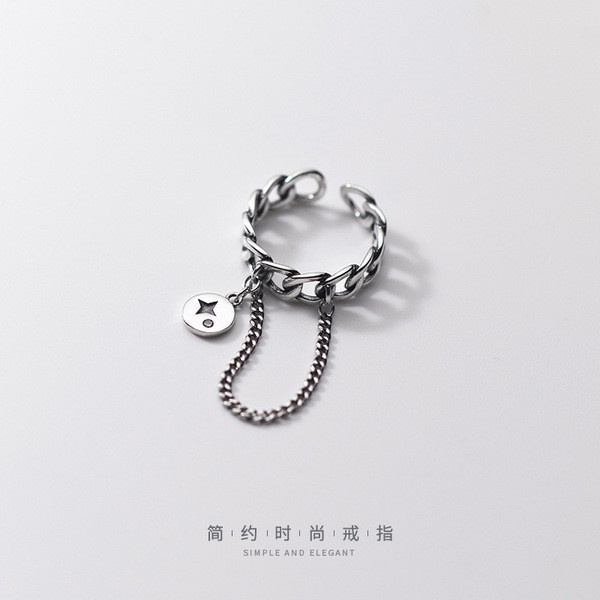s925 sterling silver adjustable trendy star silver chic fashion silver ring