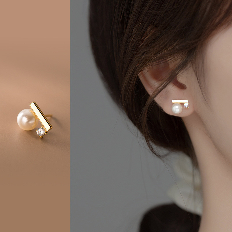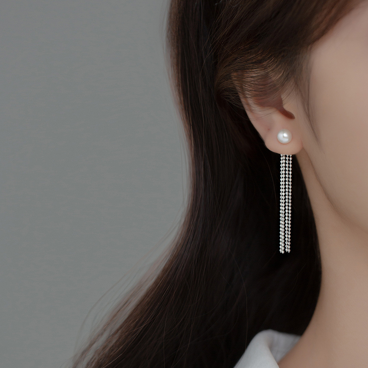 s925 sterling silver simple chain pearl long dangle earring earrings