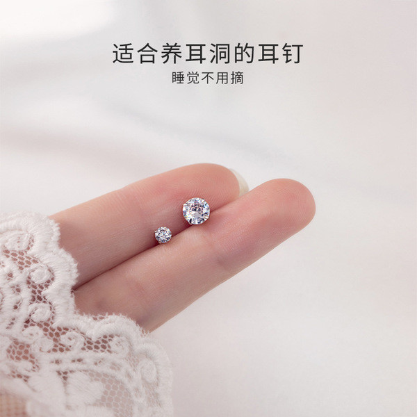 s925 sterling silver simple trendy circle rhinestone chic fashion earrings